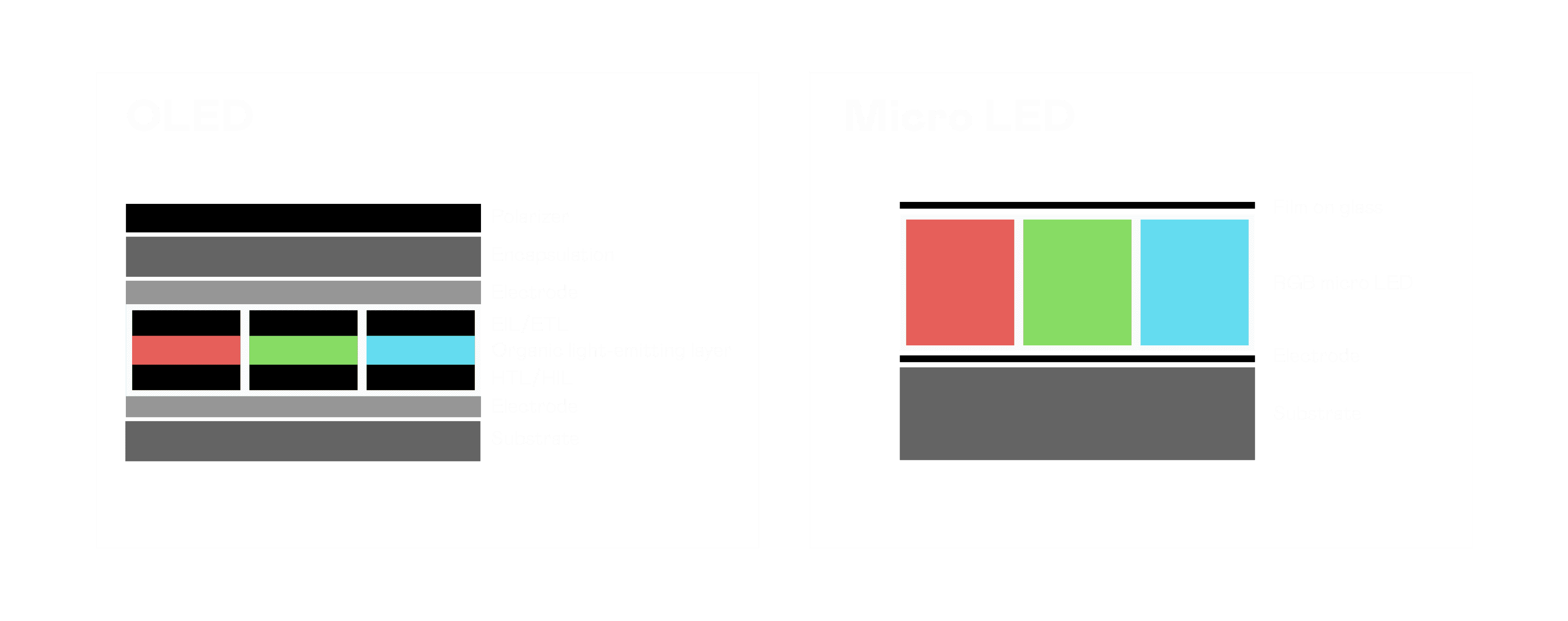 以 LED 做为显示画素,,,可让 LED 的发光效率发挥到极致,,,,从而让显示器具备优异的亮度表现,,不论是在户外或室内,,均具备出众的显示效果。。。同时,,,,与使用有机材料的 OLED 相比,,,,LED 具备更稳定、、寿命更长的特性,,不仅不会有画面烙印问题,,而且更不容易出现故障、、、坏点。。。