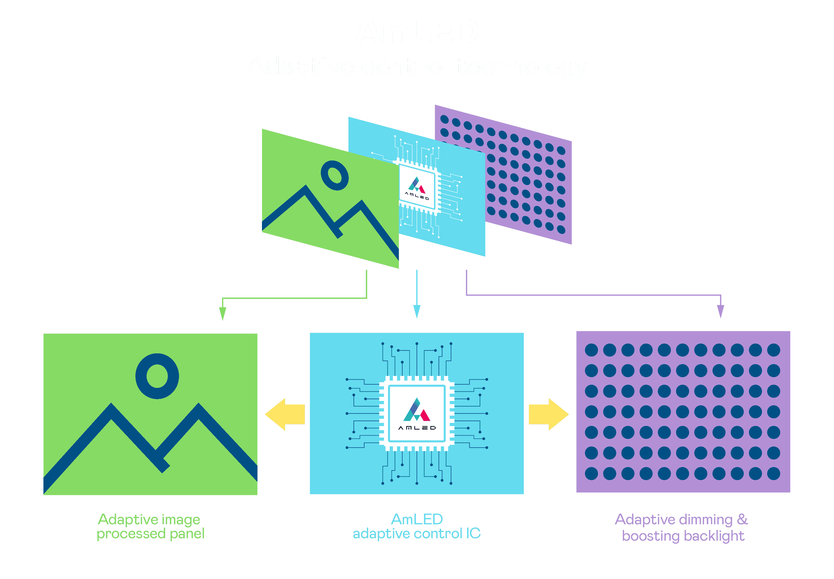AmLED 具备更省电与低蓝光特性。。。与一般的 LED 背光显示技术相比,,,,由于 AmLED 常时处于局部调光状态,,其功耗仅有前者的 50% 左右,,,同时 AmLED 还具备低蓝光特性,,,,满足长时间使用的护眼需求。。。